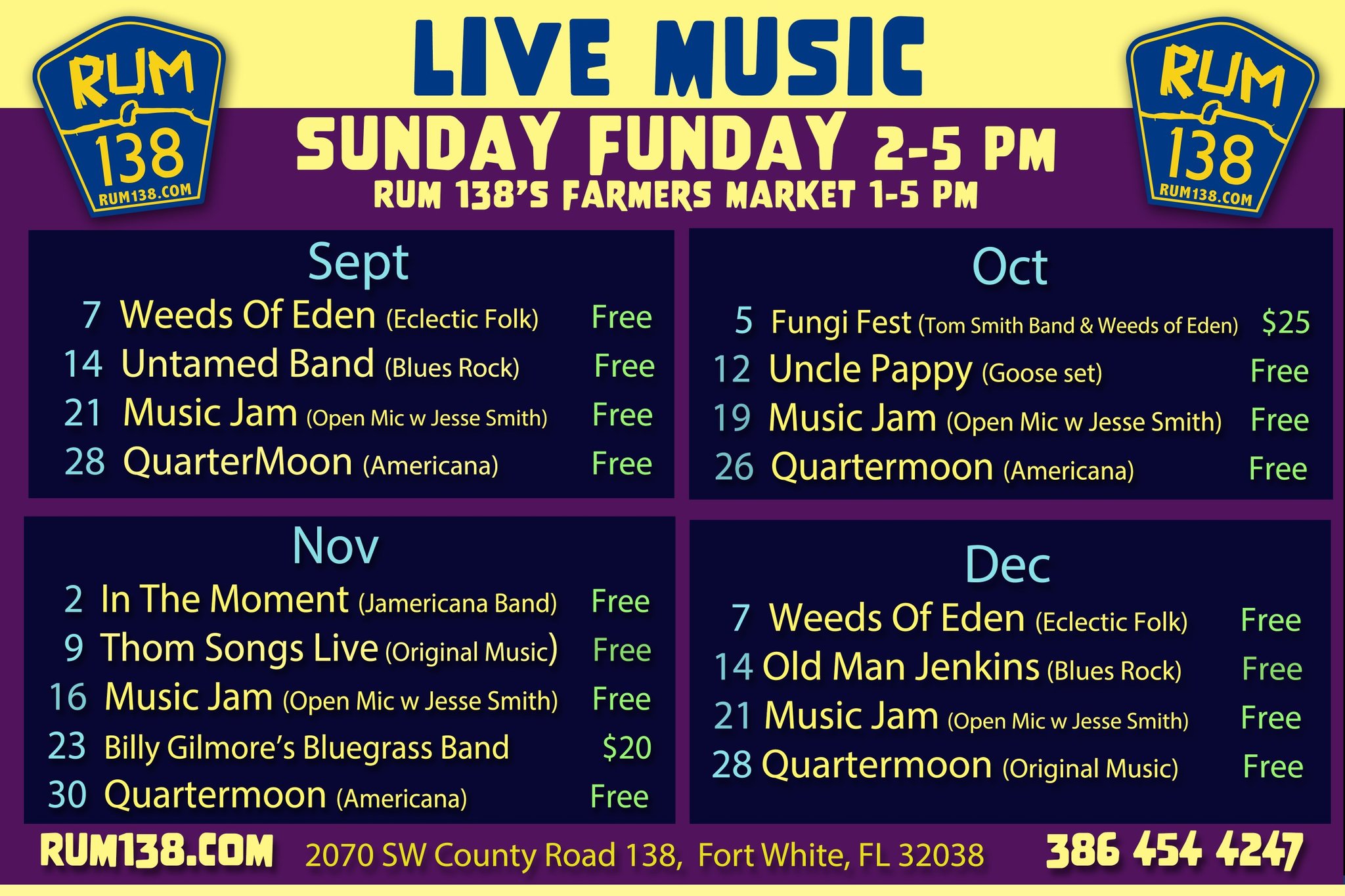 Food truck(s), farmers market, Sanna Bar is open, and really good musicians performing live on our stage outside.