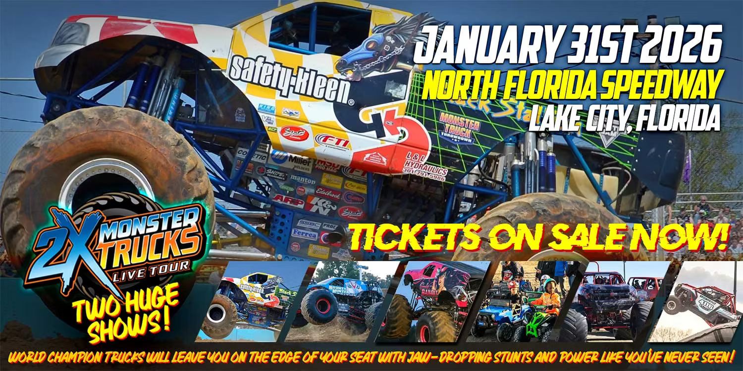 North Florida Speedway 287 NE Racetrack Lane, Lake City, FL, United StatesJoin us for an unforgettable day of monster truck action and family fun at 2X Monster Trucks Live. This event features some of the biggest names in the sport — including Bounty Hunter, Scarlet Bandit, Black Stallion, Split Personality and Iron Warrior — as they compete in racing, wheelies, and freestyle events. You’ll feel the rumble as these powerful trucks soar through […]