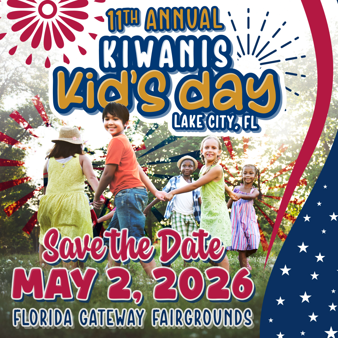 Save the date! Kiwanis Kids Day is back for its 11th year!Join us on May 2, 2026 from 9AM to 3PM at the Florida Gateway Fairgrounds in Lake City for a full day of fun, games, and activities for the kids.Mark your calendars and follow our page for updates!